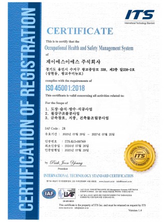 안전보건경영시스템 인증서 ISO45001
